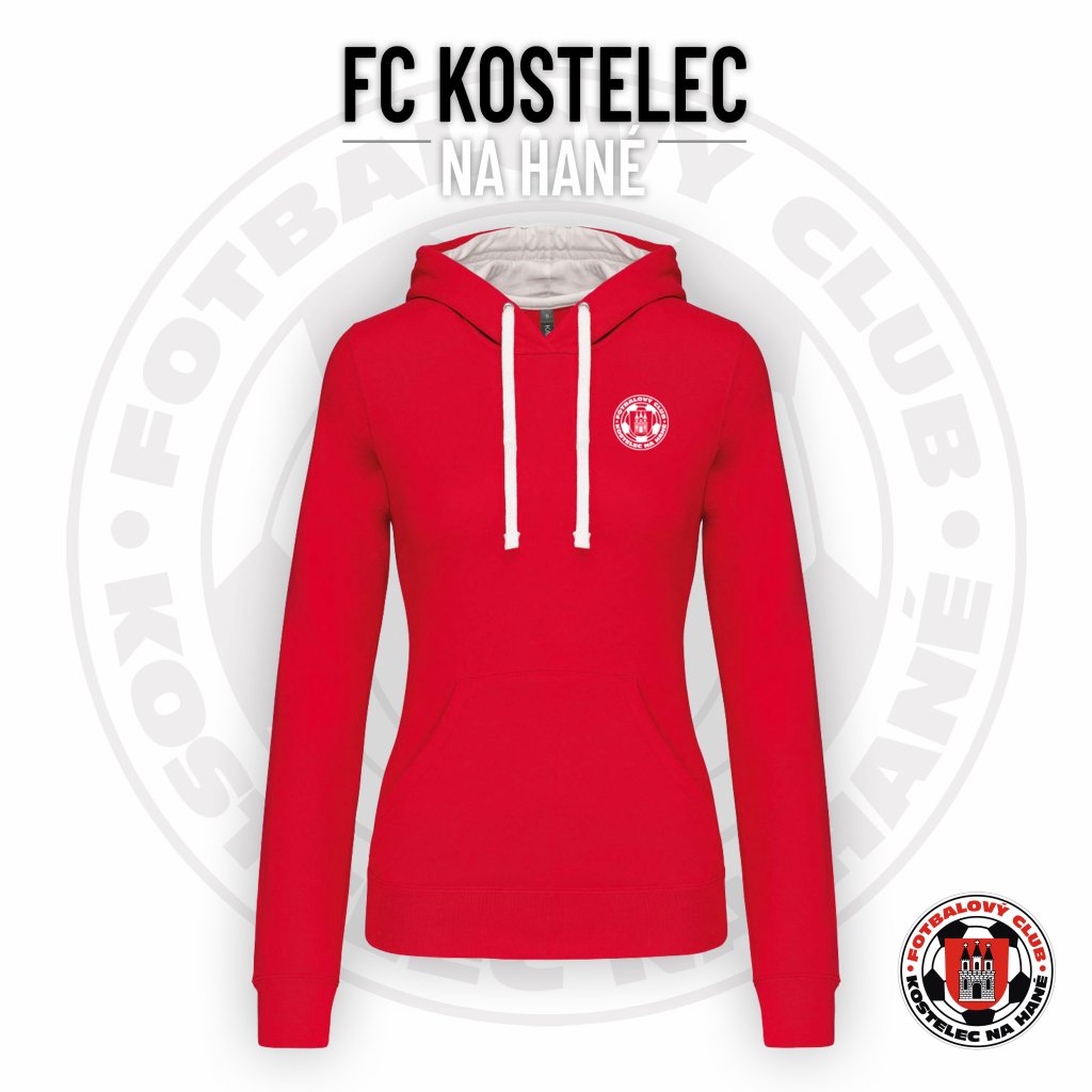 Dámská dvoubarevná mikina s kapucí přes hlavu FC KOSTELEC "DECENTNÍ" - červeno/bílá