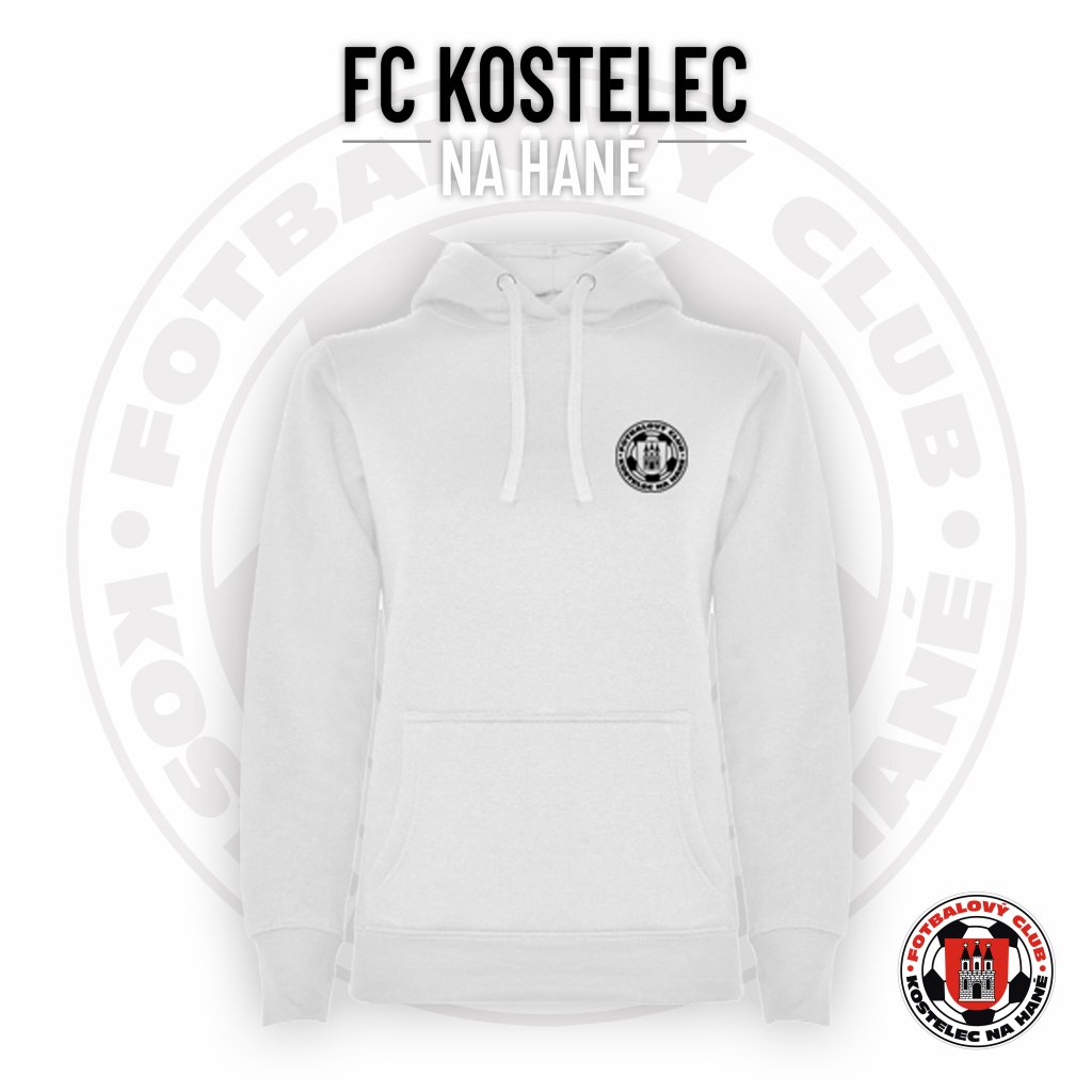 Dámská jednobarevná mikina s kapucí přes hlavu FC KOSTELEC "DECENTNÍ" - bílá