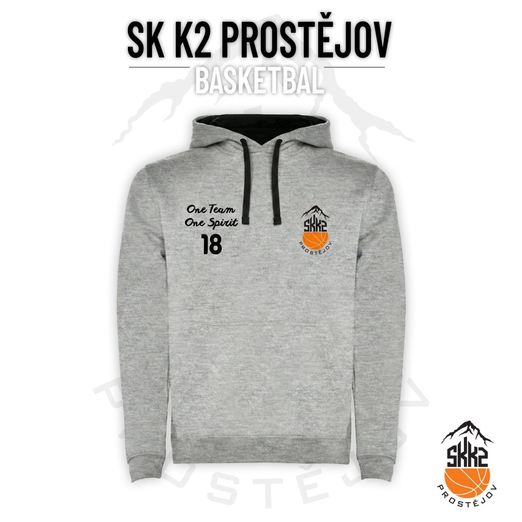 Dámská mikina klokan s klasickým výstřihem SK K2 BASKET "DECENTNÍ" - šedý melír/černá