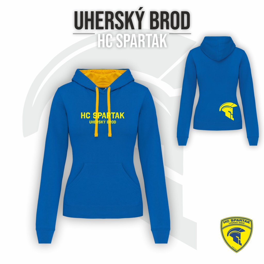 Dámská mikina s kapucí přes hlavu HC SPARTAK "NÁZEV" - královská modrá/žlutá