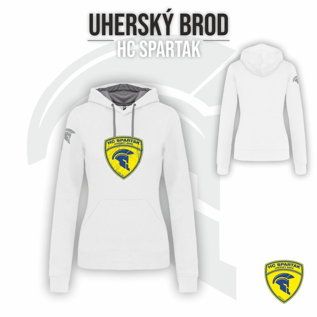 Dámská mikina s kapucí přes hlavu HC SPARTAK "PO BOJI" - bílá/šedá