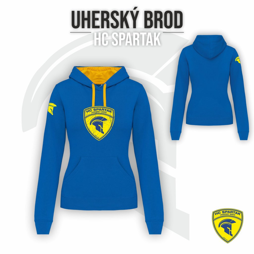 Dámská mikina s kapucí přes hlavu HC SPARTAK "PO BOJI" - královská modrá/žlutá