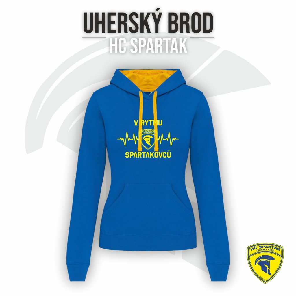 Dámská mikina s kapucí přes hlavu HC SPARTAK "V RYTMU" - královská modrá/žlutá
