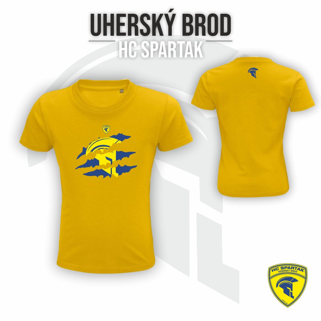 Dámské bavlněné tričko s krátkým rukávem HC SPARTAK "PODRÁPANÉ LOGO" - žlutá