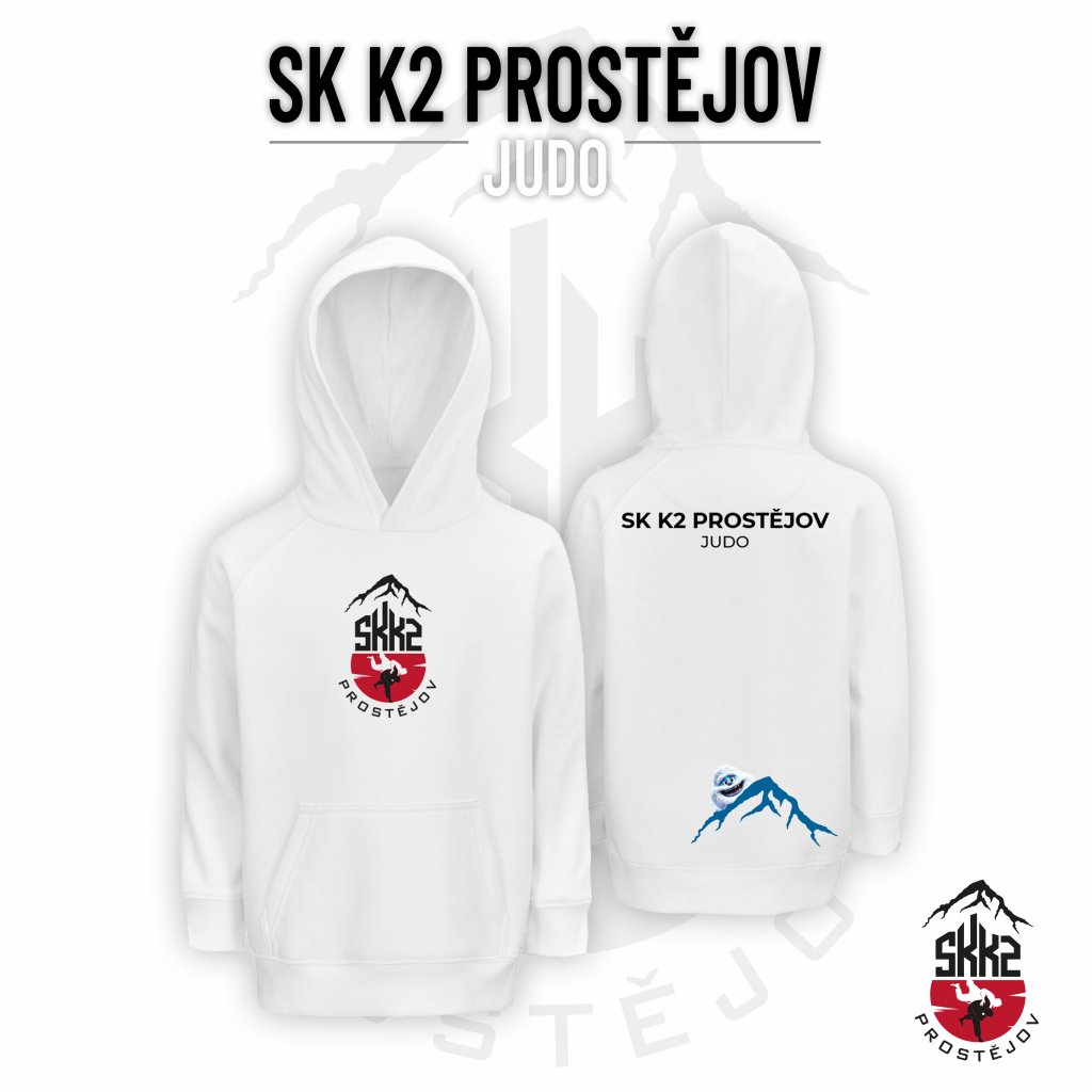 Dětská bavlněná mikina "COMFORT" JUDO SK K2 PROSTĚJOV "VELKÉ LOGO" - bílá