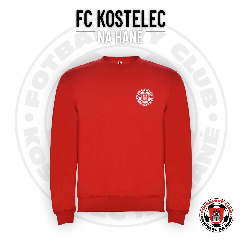 Dětská mikina klasik bez kapuce přes hlavu FC KOSTELEC "DECENTNÍ" - červená