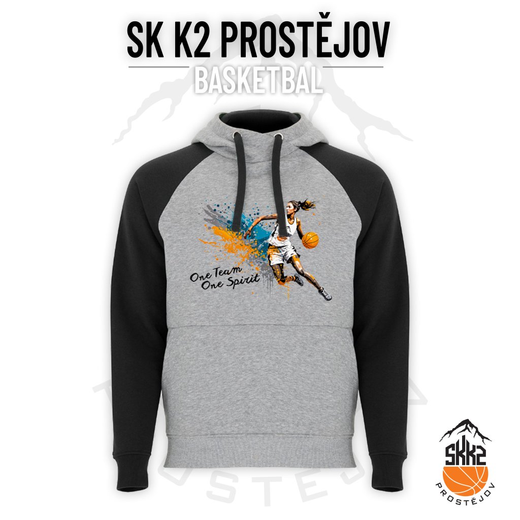 Dětská mikina klokan s překříženým výstřihem SK K2 BASKET "DRIBLINK"- šedý melír/černá