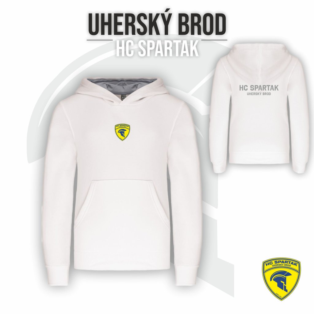 Dětská bavlněná mikina "klokan", v provedení bílá/šedá, v decentním designu pro konzervativnější fanoušky (logo vepředu je výšivka). Za příplatek možnost personifikace (jmenovka, číslo, přezdívka, nápis - např. MALÝ SPARTAKOVEC).