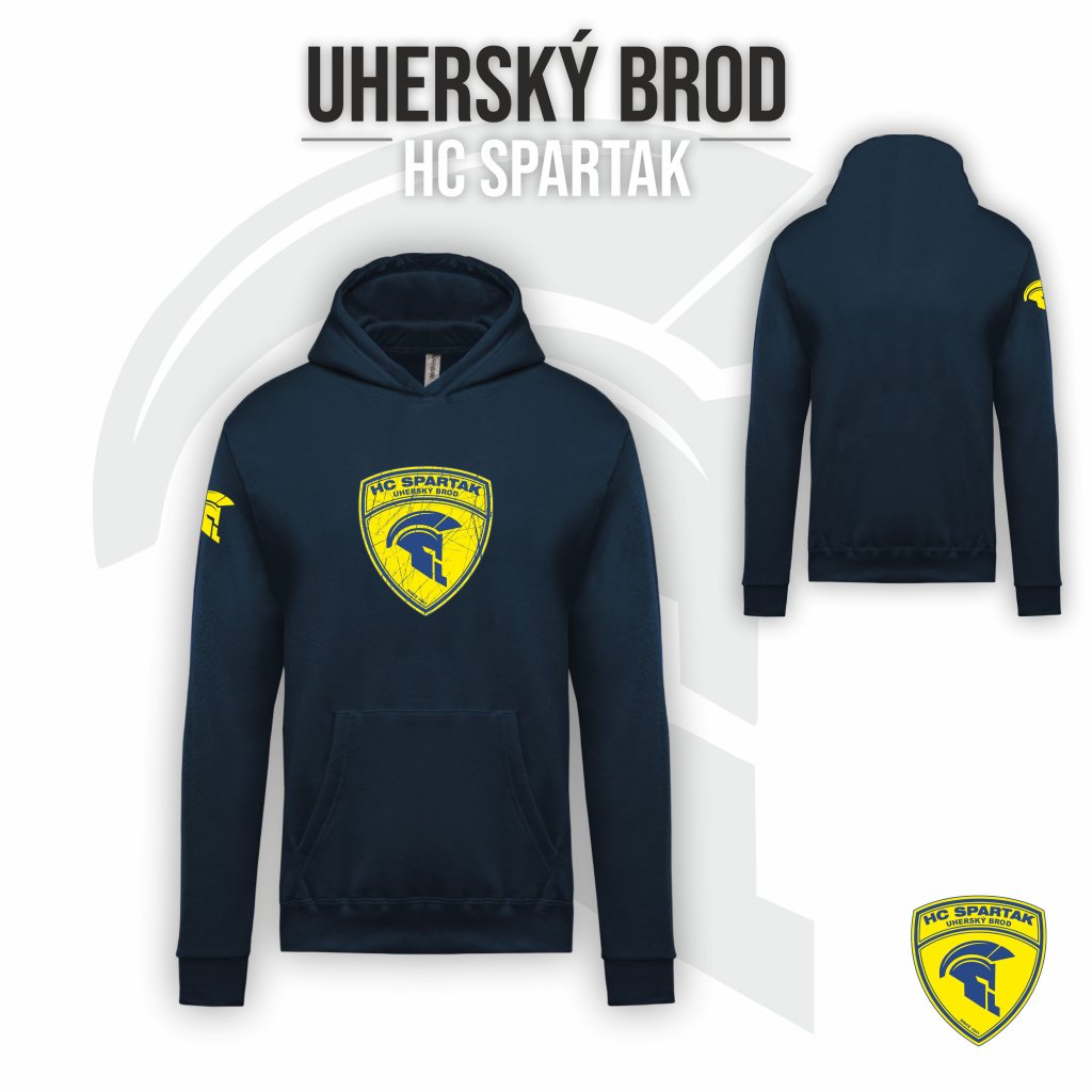 Dětská mikina s kapucí přes hlavu "klokan" HC SPARTAK "PO BOJI" - námořní modrá
