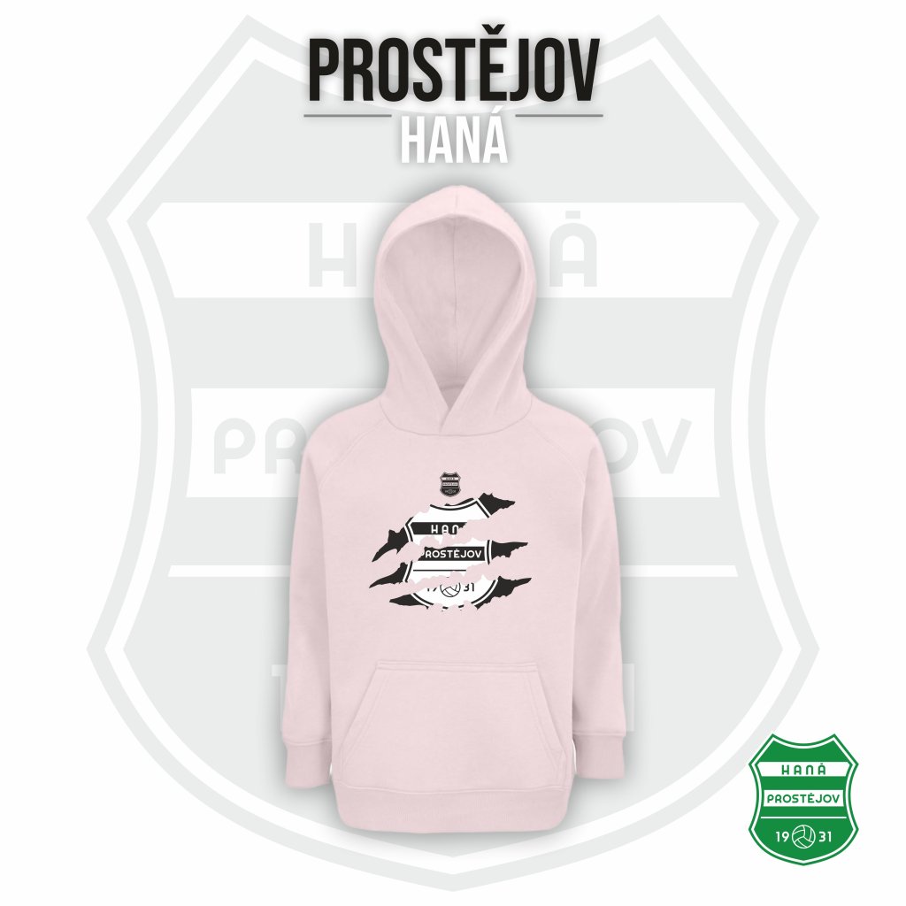 Dětská mikina s kapucí přes hlavu HANÁ PROSTĚJOV "PODRÁPANÉ LOGO" - světle růžová