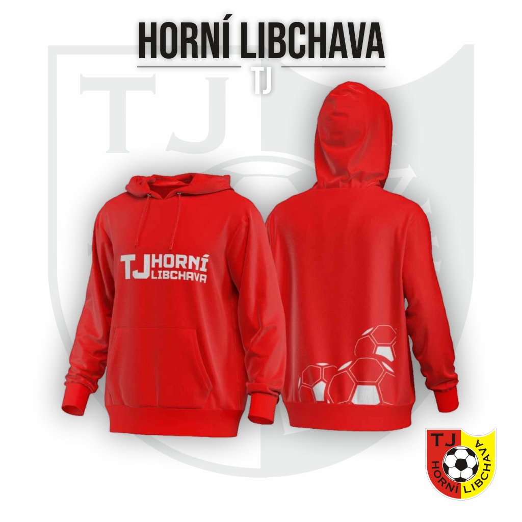 Dospělá mikina s kapucí přes hlavu TJ Horní Libchava "název" - červená