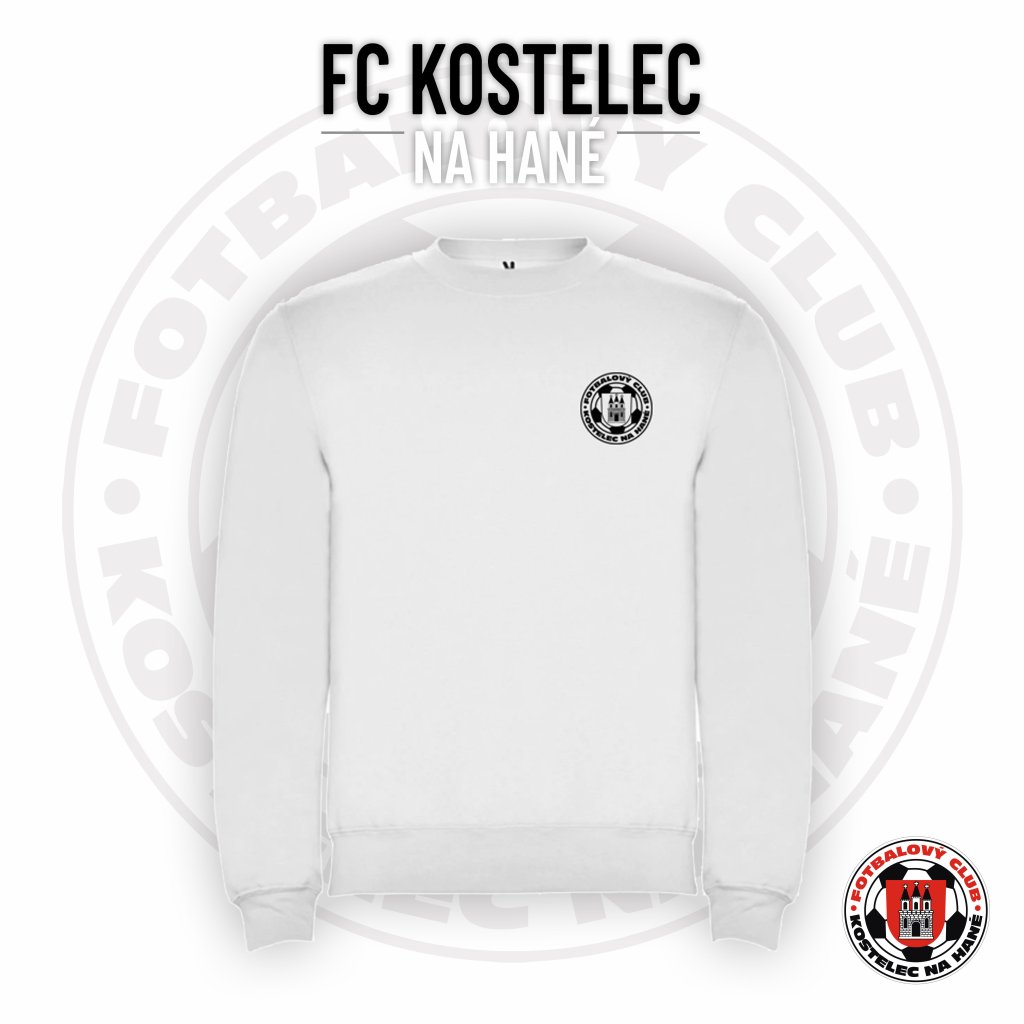 Dospělá unisex mikina klasik bez kapuce přes hlavu FC KOSTELEC "DECENTNÍ" - bílá