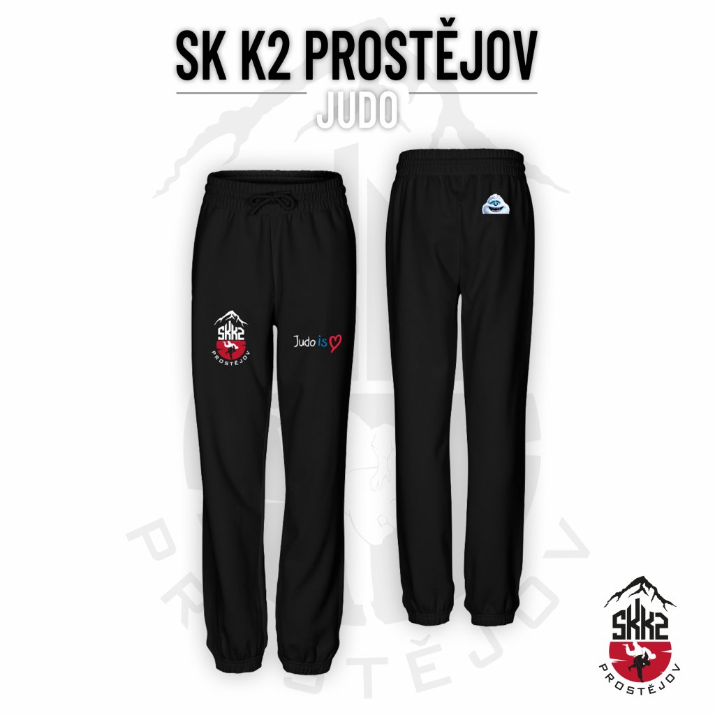 Dospělé unisex bavlněné tepláky JUDO SK K2 PROSTĚJOV "POHODLNĚ" - černé