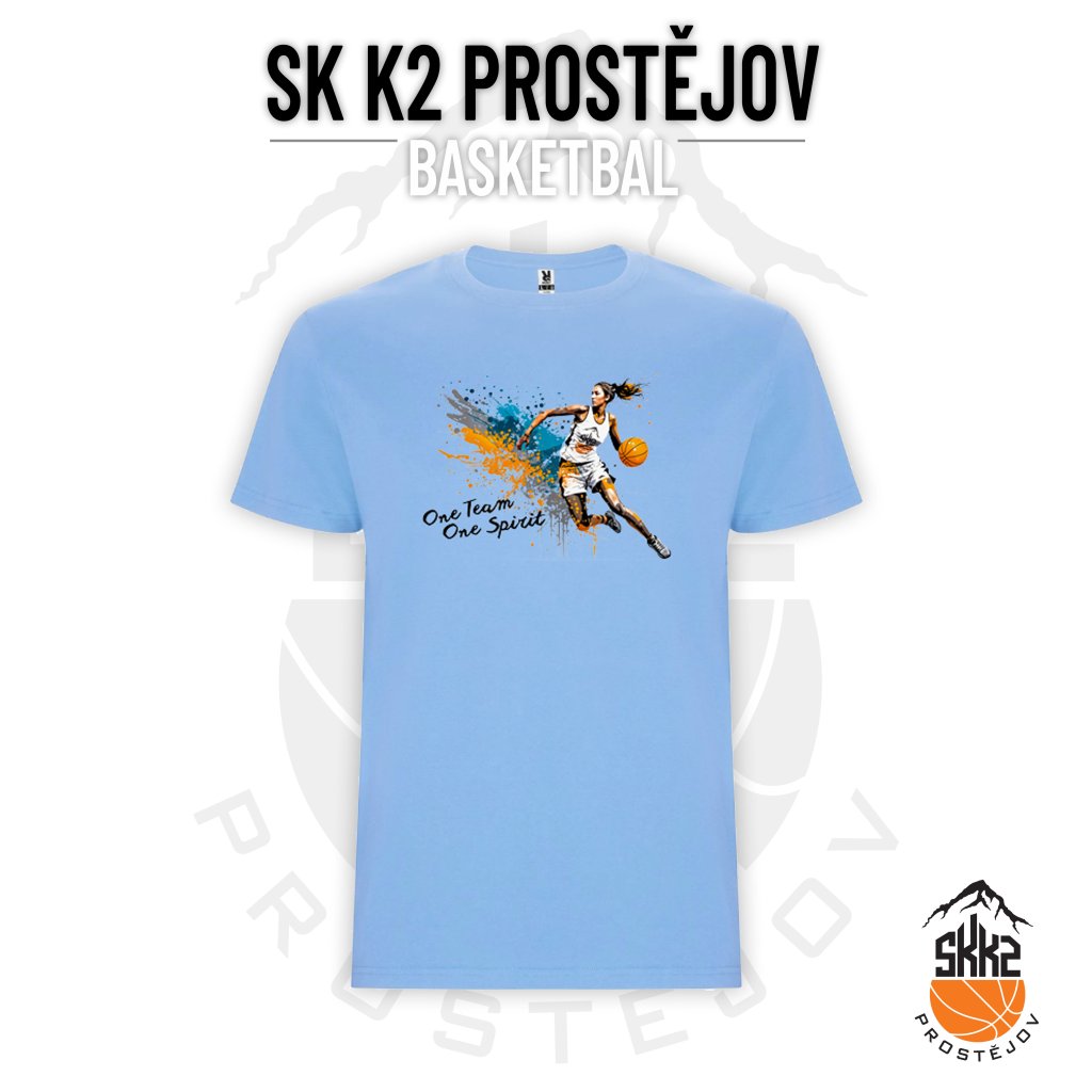 Dospělé unisex bavlněné tričko s krátkým rukávem SK K2 BASKET "DRIBLINK" - nebesky modré