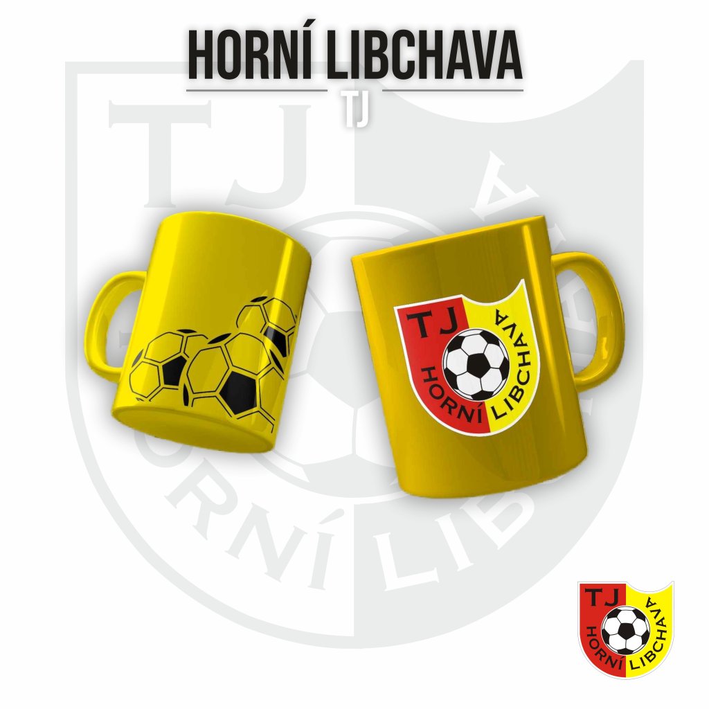 Klubový hrnek TJ Horní Libchava ve žluté variantě - ideální na šampaňské po vyhraném zápase.