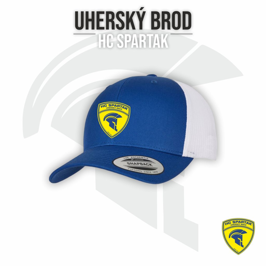 Klubová kšiltovka se síťkou zn. Flexfit, mírně zahnutý kšilt, vzadu na patentku, varianta královská modrá/bílá, vepředu vyšité plnobarevné logo ve 3D. Za příplatek možnost personifikace (jmenovka, číslo, přezdívka - výšivka). Další varianta helmice do arény, kde slunce holt trochu víc praží a pokrývka hlavy bodne.
