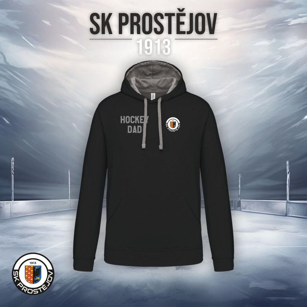 Pánská bavlněná mikina s kapucí přes hlavu SK Prostějov 1913 "HOCKEY DAD" - černo/šedá