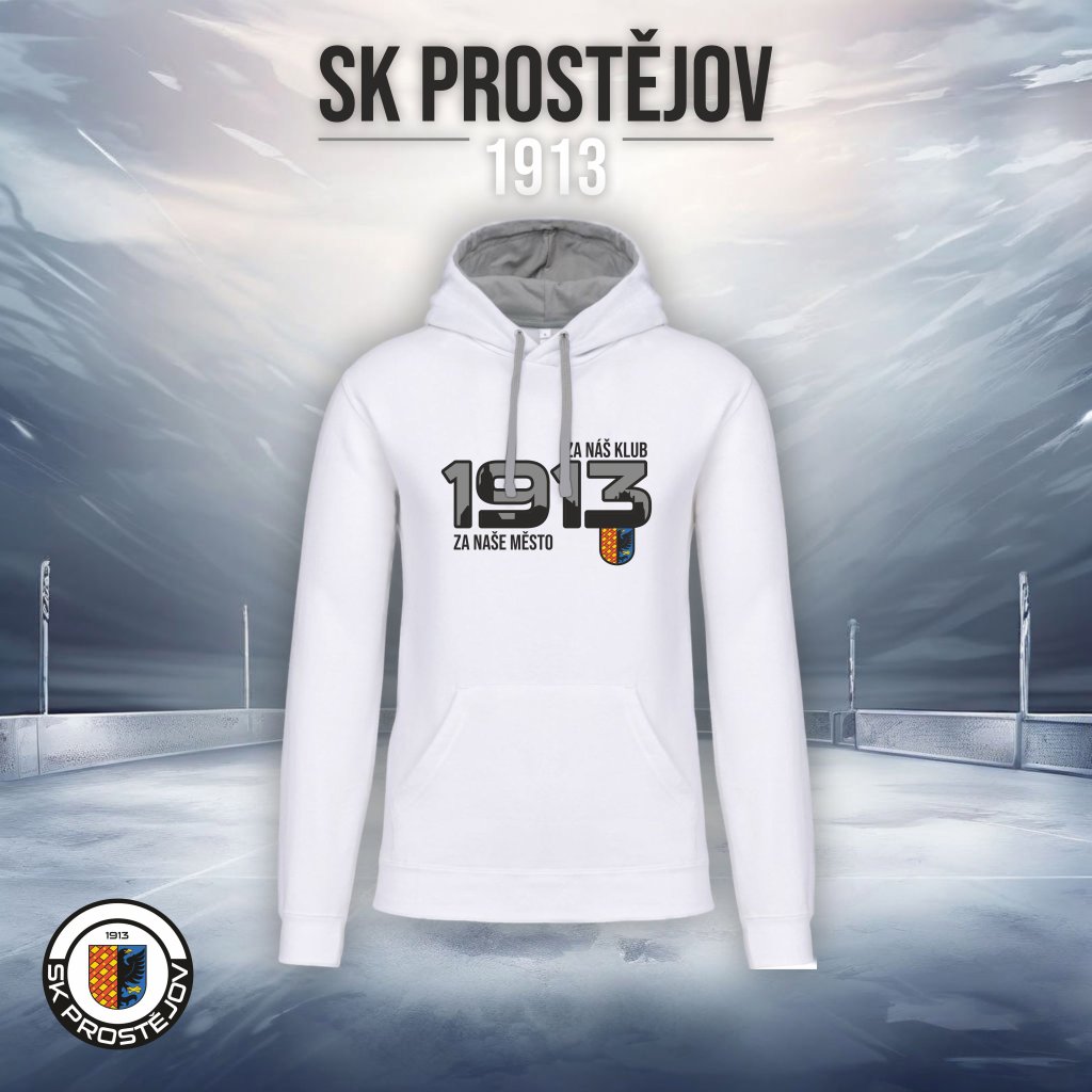 Pánská bavlněná mikina s kapucí přes hlavu SK Prostějov 1913 "SILUETA MĚSTA" - bílo/šedá