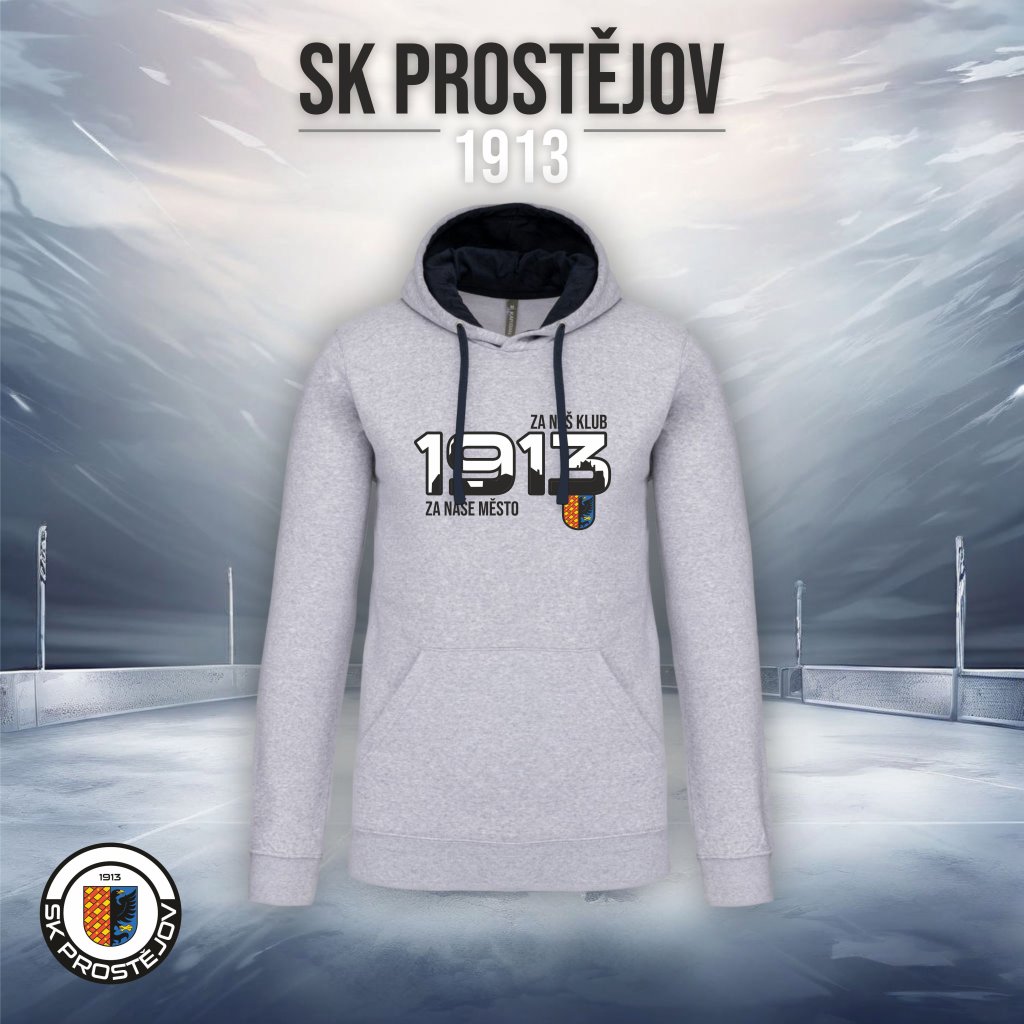 Pánská bavlněná mikina s kapucí přes hlavu SK Prostějov 1913 "SILUETA MĚSTA" - šedá