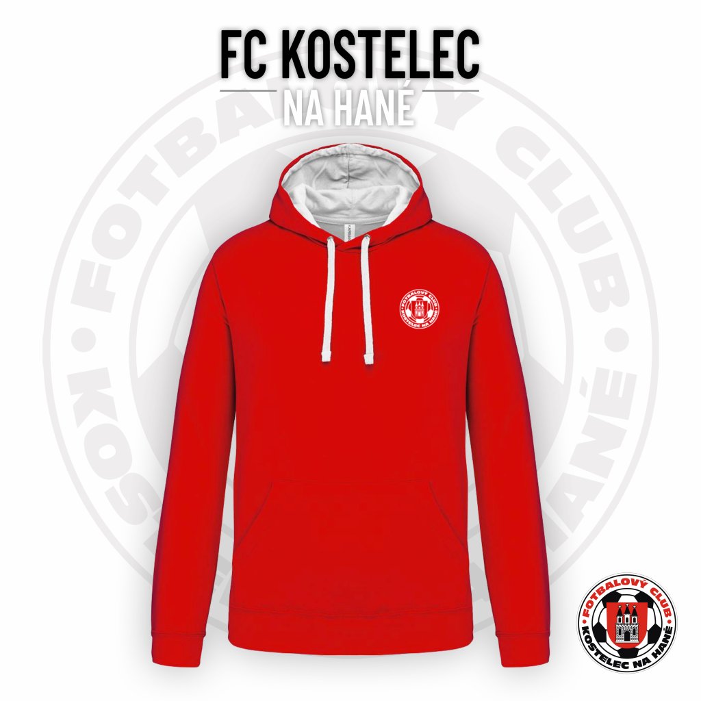 Pánská dvoubarevná mikina s kapucí přes hlavu FC KOSTELEC "DECENTNÍ" - červeno/bílá