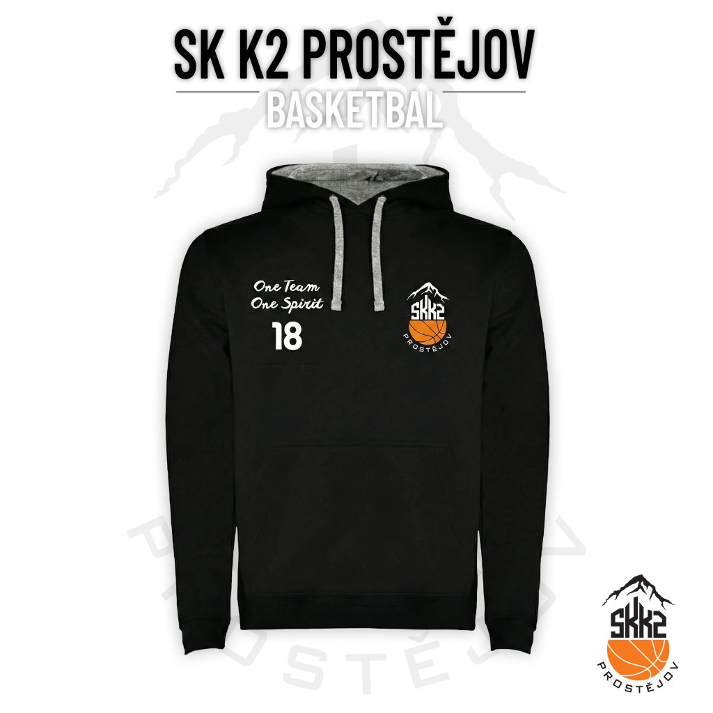 Pánská mikina klokan s klasickým výstřihem SK K2 BASKET "DECENTNÍ" - černá/šedý melír