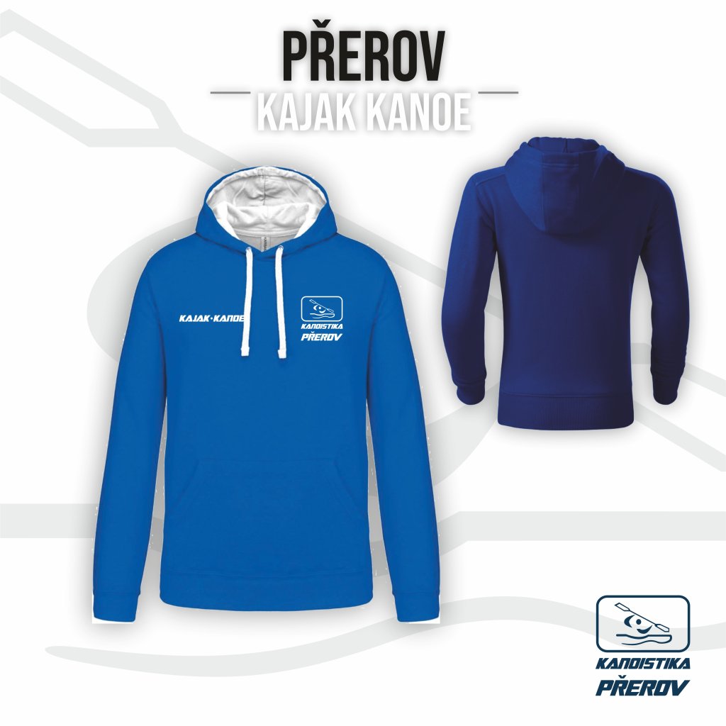 Pánská mikina s kapucí přes hlavu "KANOISTIKA PŘEROV" - modro/bílá