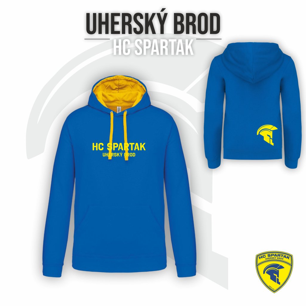 Pánská mikina s kapucí přes hlavu HC SPARTAK "NÁZEV" - královská modrá/žlutá