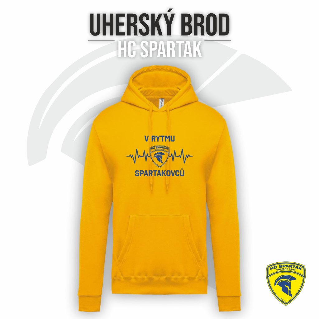 Pánská mikina s kapucí přes hlavu HC SPARTAK "V RYTMU" - žlutá