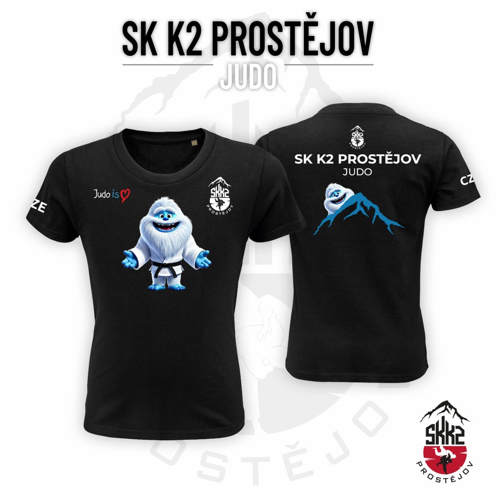Pánské bavlněné tričko "EXCLUSIVE" s krátkým rukávem JUDO SK K2 PROSTĚJOV "YETTI V ČELE" - černé