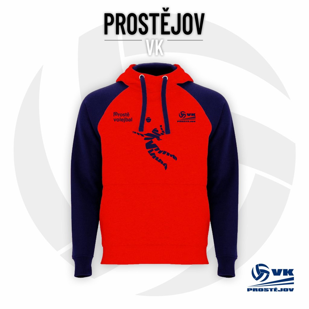 Unisex mikina klokan s překříženým výstřihem VK PROSTĚJOV "SMEČ" - červená/tmavě modrá