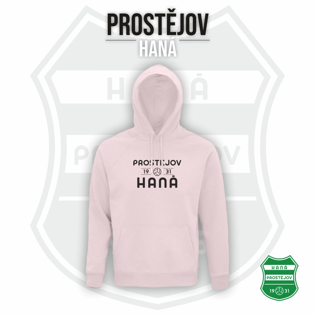 Unisex mikina s kapucí přes hlavu HANÁ PROSTĚJOV "1931 UPROSTŘED" - světle růžová